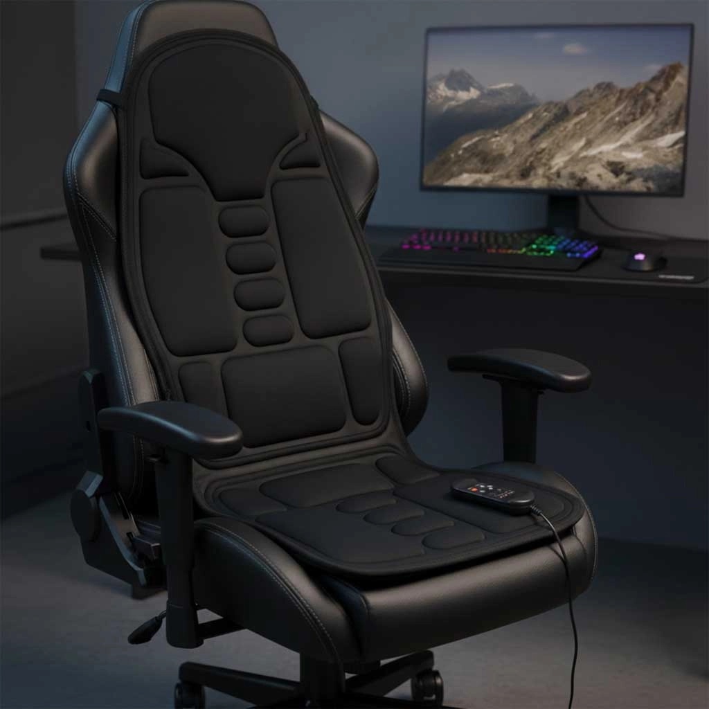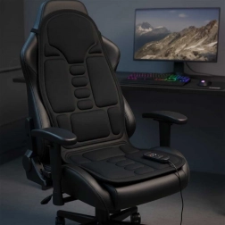 Ez a kényelmes masszázs ülésvédő célzott vibrációs masszázst nyújt a hátnak és a comboknak, és az integrált fűtésnek köszönhetően segíti az izmok felmelegítését. Az egyszerű rögzítés rugalmas pántokkal stabil tartást biztosít irodai széken, gamer fotelben és autóülésen is.