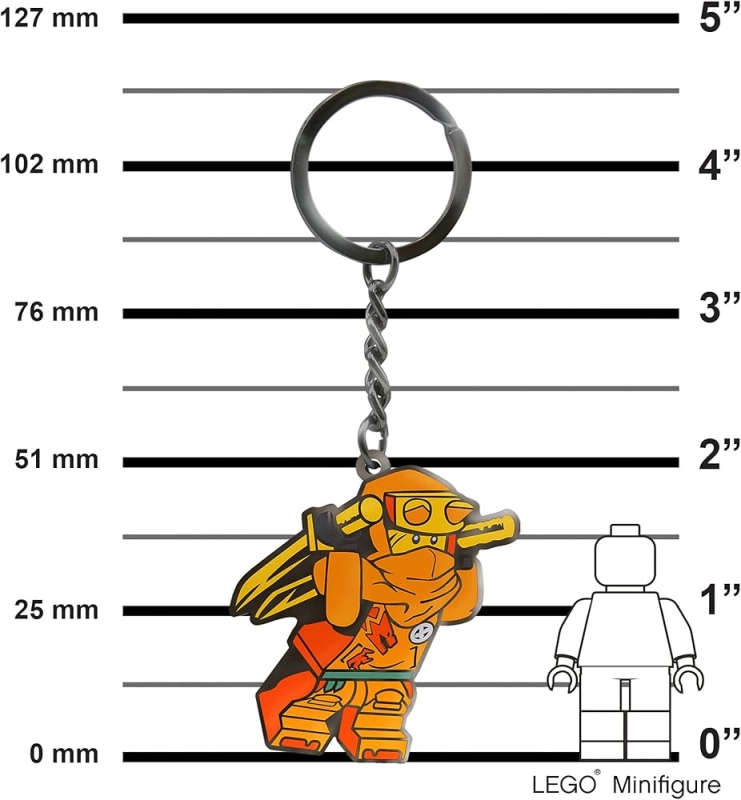 A kb. 6 cm-es praktikus méret könnyedén elfér a zsebben, mégis elég feltűnő, hogy a kulcsokat könnyebb legyen megtalálni. Remek ajándékötlet gyerekeknek és felnőtt Ninjago rajongóknak, valamint LEGO kiegészítő-gyűjtőknek.