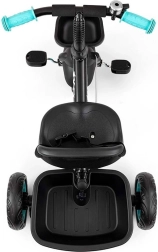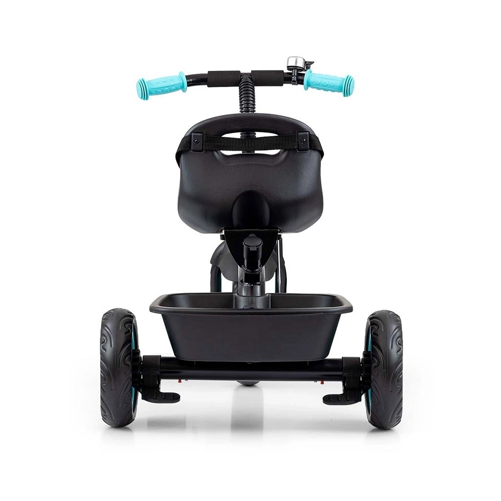 Nagyobb kényelem érdekében a pedálok hajtása az első keréken blokkolható vagy oldható: a gyermek tekerhet, vagy a szülő vezetheti a kormányrúddal. A 3 pontos biztonsági övek vállvédőkkel biztonságban tartják a kis utast, míg az első kosár és a hátsó tálca elférnek a kedvenc játékok. A kormányon lévő csengő növeli a biztonságot és a szórakozást.
