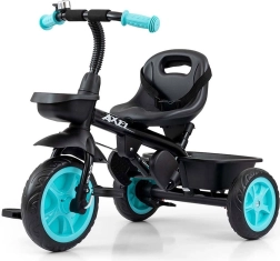 Praktikus és biztonságos tricikli a legkisebbeknek 1–3 éves korig. Kínál erős acél vázat, állítható ülést, szülői kormányrudat és széles EVA kerekeket a kényelmes utazáshoz. A pedálhajtás lekapcsolásának lehetőségével a gyermek kényelmesen tolható. Két kosár, csengő és 3 pontos biztonsági övek gondoskodnak a szórakozásról és a biztonságról minden sétán.