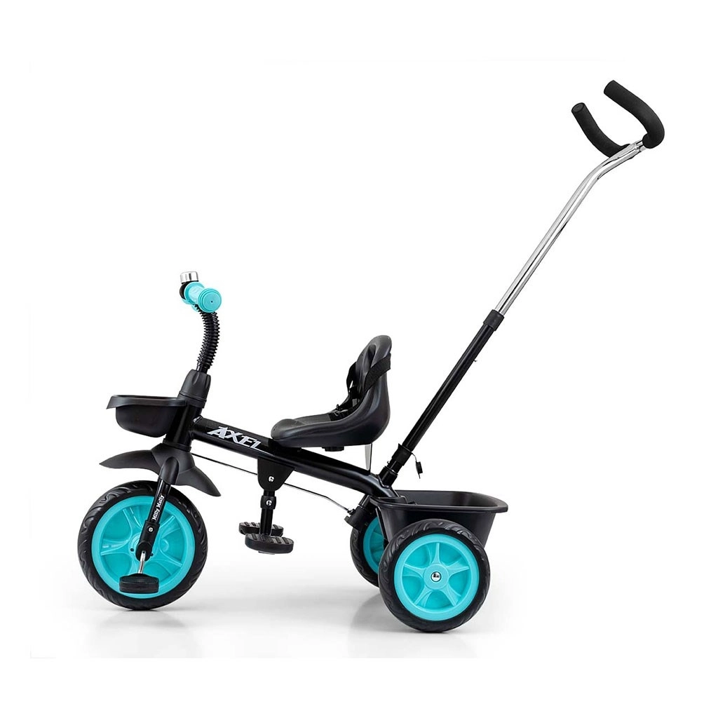 Ez a MILLY MALLY AXEL gyermek tricikli együtt nő a gyermekkel – könnyen állítható az ülés távolsága a kormánytól és a kormányrúd hossza. A tartós fémszerkezet és a minőségi anyagok hosszú élettartamot és stabilitást garantálnak. A széles, kemény EVA habkerekek elnyelik az egyenetlenségeket és nem igényelnek karbantartást.