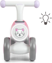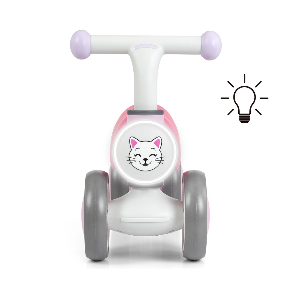 A könnyű és stabil MILLY MALLY YORK gyerek futóbicikli rózsaszín színben tökéletes első jármű a totyogóknak. A négykerekű kialakításnak és a széles EVA hab kerekeknek köszönhetően a haladás biztonságos és egyenletes, beltérben is. A futóbicikli LED fényt, melódiákat és állathangokat, valamint kényelmes puha ülést kínál a hosszabb játékhoz. 12 hónapos kortól ajánlott, teherbírása 25 kg.