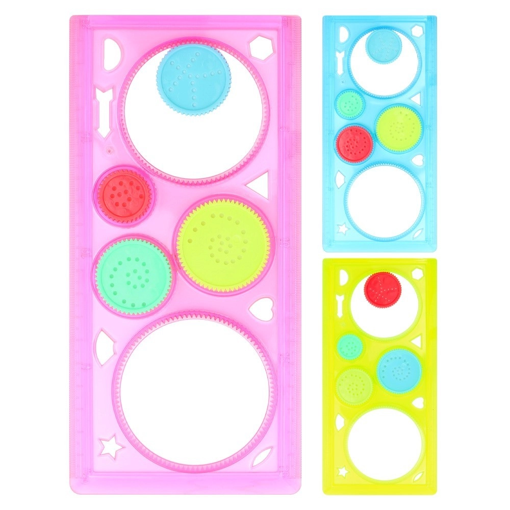 Fedezze fel a végtelen alkotási lehetőségeket a spirográffal, amellyel geometrikus formák, ornamentikák és mandalák rajzolhatók. A forgó fogaskerekek és sablonok segítségével gyerekek és felnőttek egyaránt könnyedén készítenek pontos és látványos mintákat. A készlet 3 szín keverékében érhető el, ideális kreatív rajzoláshoz, füzetdíszítéshez és projektekhez.