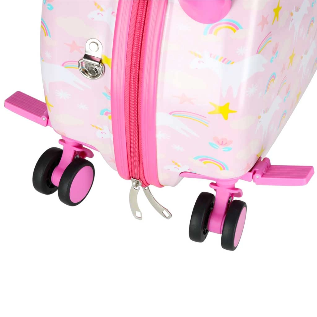 Ajándékozzon a gyerekeknek vidám és gondtalan utazást! Ez a gyermek gurulós bőrönd ötvözi a kényelmet, a funkcionalitást és az mesés unikornis dizájnt. Kabinméretének köszönhetően kézipoggyászként is ideális, kemény, merev héja pedig védi a tartalmat az ütésektől.