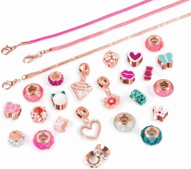 Készítsd el saját ékszereidet ezzel a rózsaszín karkötőkészítő készlettel, amely tartalmaz mindent, amire szükséged van: gyöngyöket, medálokat, előre elkészített karkötőket és útmutatót. Ideális kreatív szórakozás 8 éves kortól.