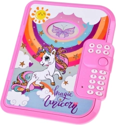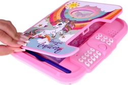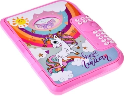 Ez a rózsaszín napló a varázslatos unikornis motívummal ideális azoknak a gyerekeknek, akik szeretnék gondolataikat és kincseiket biztonságban tudni. A 4 jegyű PIN kód megadása után nyílik, így a feljegyzések kizárólag a valódi tulajdonosé maradnak. A angol nyelvű hangsegédnek köszönhetően a kezelés intuitív és játékos.