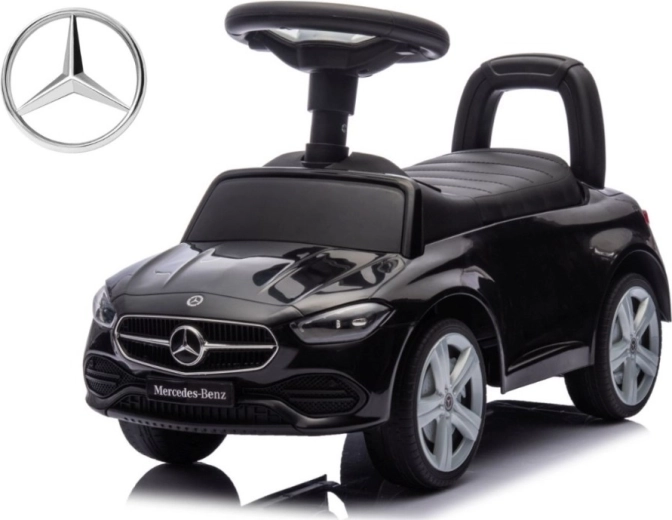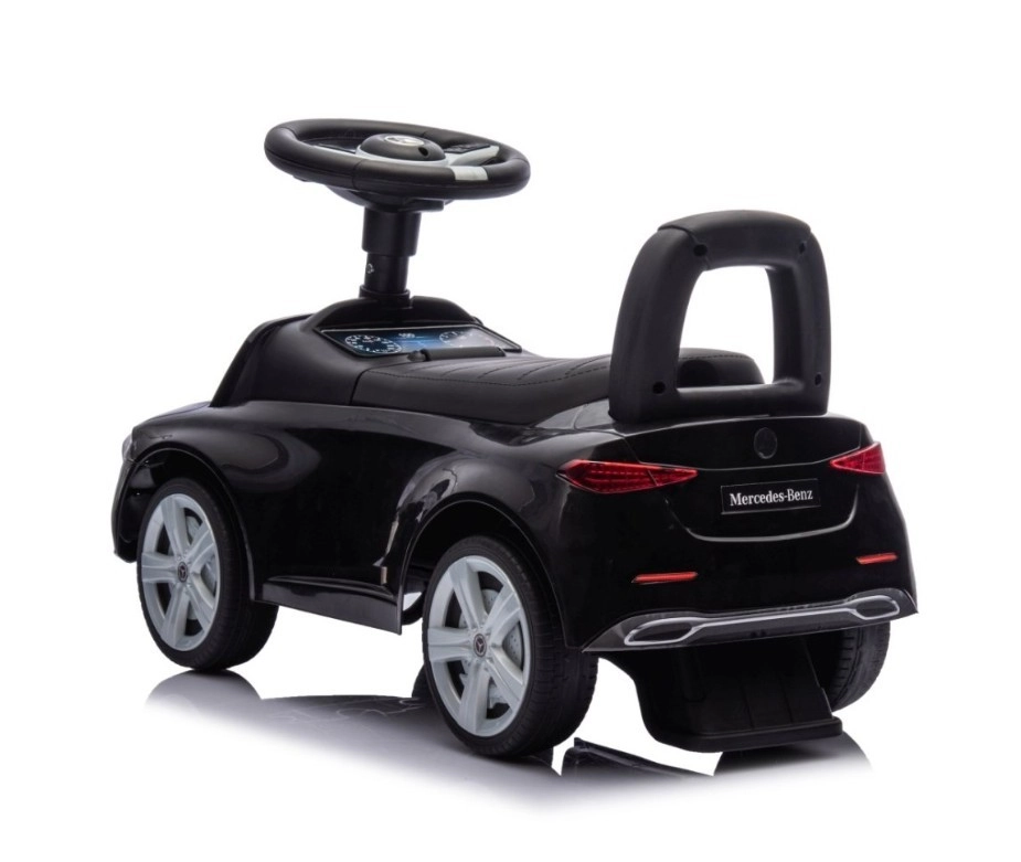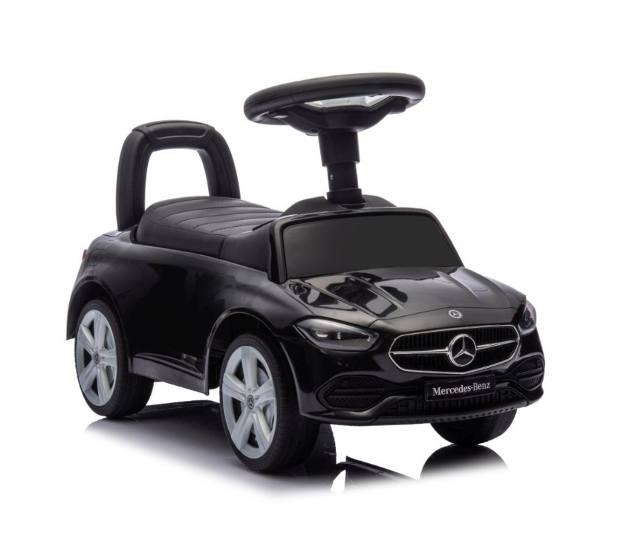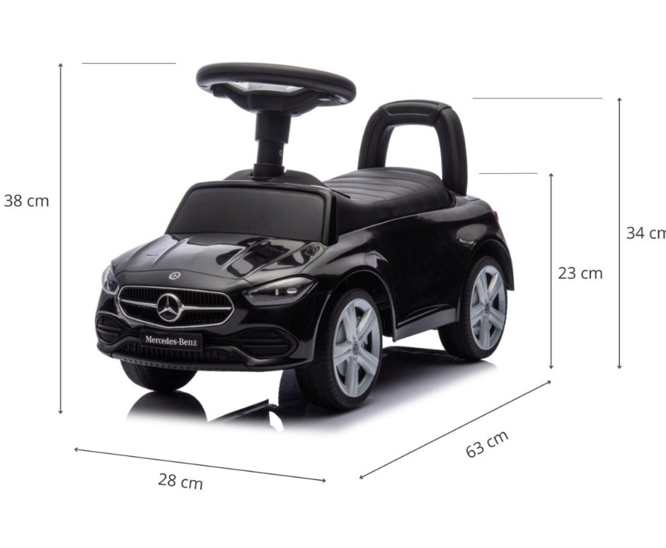 A stílusos MERCEDES C‑CLASS járgány elegáns fekete színben valósághű megjelenésével és átgondolt részleteivel nyűgözi le a kis autórajongókat. Stabil haladást, kényelmes, háttámlás ülést és ülés alatti tárolóhelyet kínál. A forgatható első kerekeknek és a működő duda funkciónak köszönhetően fejleszti a gyermek motorikáját, koordinációját és képzelőerejét, míg a felborulás elleni védelem biztonságos szórakozást garantál otthon és a szabadban is.