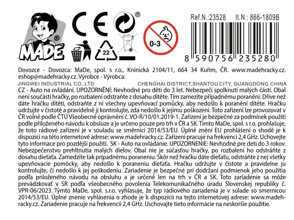 A modell AA elemmel vagy akkupackkel működik, így könnyen meghosszabbítható a menetidő. A vonzó versenyzői dizájn és az ablakos dobozos csomagolás tökéletes születésnapi vagy karácsonyi ajándékká teszi.