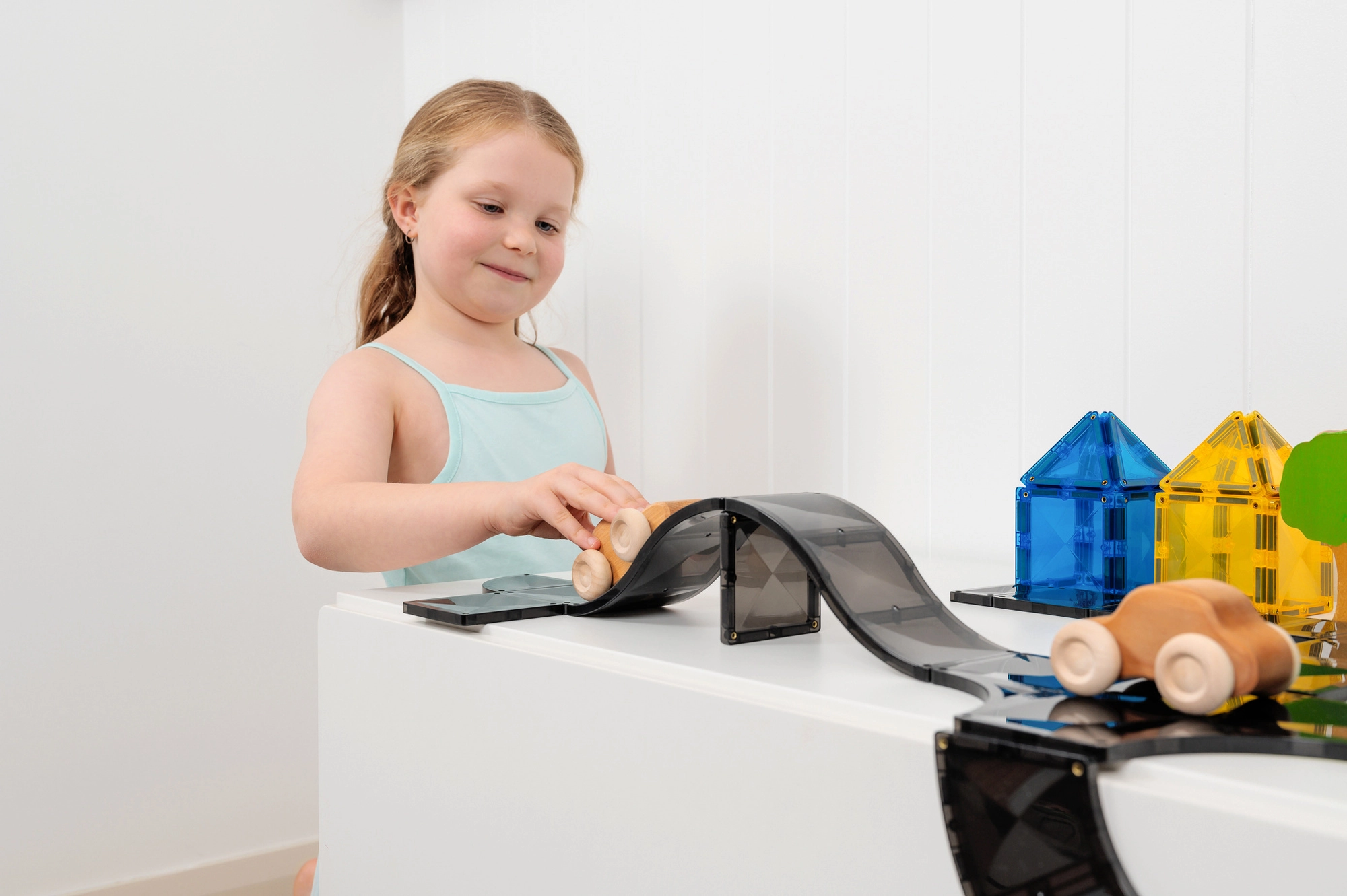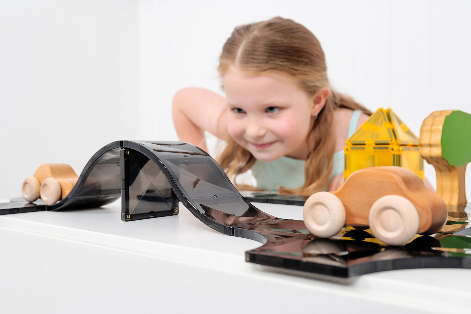 Kombináld a rámpákat, kanyarokat, T-elemeket és kereszteződéseket tetszőleges elrendezésben. A mágneses csatlakozás gyors, stabil és szórakoztató a kielégítő „klikk” érzésnek köszönhetően.