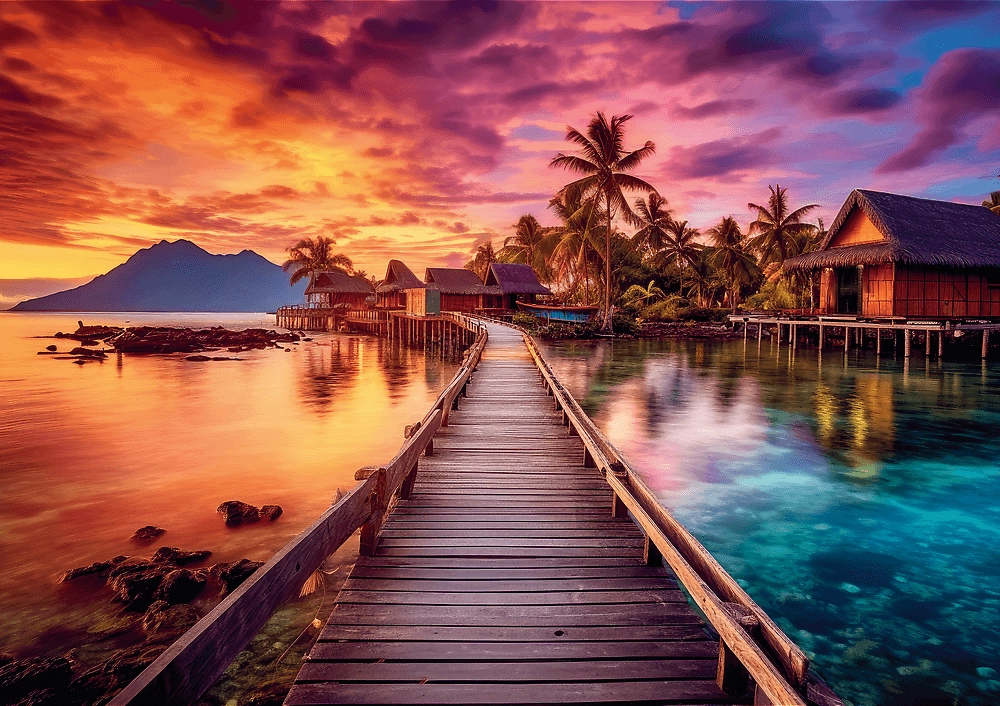 Fedezze fel a nyugodt tengerparti este varázsát a TREFL „Naplemente a paradicsom felett” kirakóval. A 1000 precízen gyártott darabnak köszönhetően zökkenőmentes a kirakás és tökéletes az illeszkedés. A mellékelt poszter segít a motívumban való tájékozódásban és felgyorsítja a folyamatot.