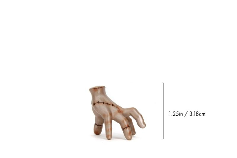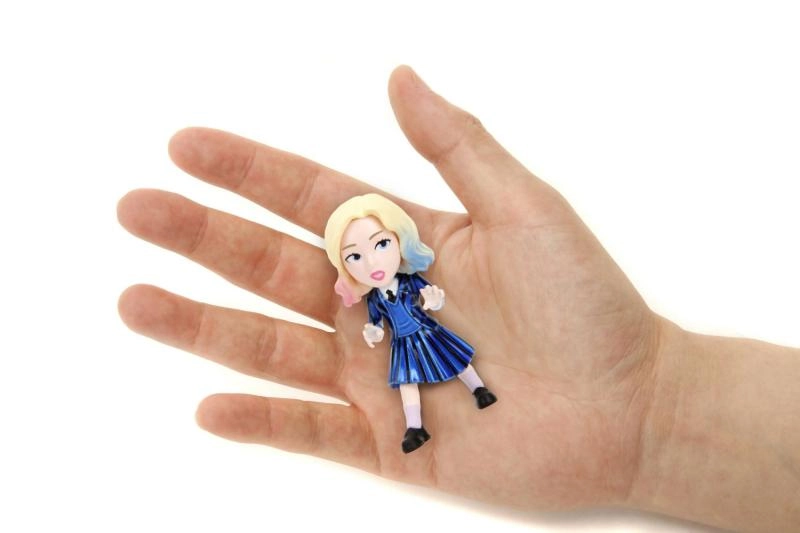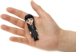 A kollekcióban megtalálható Wednesday két ikonikus összeállításban, barátnője Enid kék iskolai egyenruhában és a titokzatos Thing – ideális mix rajongóknak és gyűjtőknek.