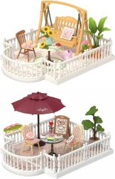 Ez a 3D bővítmény miniházakhoz készült, és kompatibilis minden DW68 modellel. A precízen kivágott fa-, műanyag- és papírelemekkel látványos teraszt hintával állíthatsz össze, virágokkal és kiegészítőkkel, amely új pihenő- és bemutatóhelyet ad minivilágodnak.