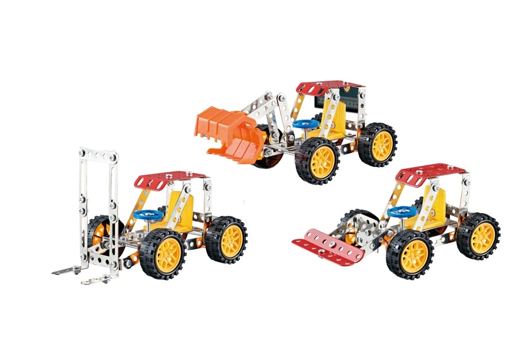 Állítsd össze saját építőgép-modelljeidet masszív fém építőkészletből, 122 darabbal. Az elemek csavarokkal és anyákkal kapcsolódnak, így az építés tartós, szórakoztató, és egyben ügyes kezeknek való kihívás. A készlet fém elemeket kombinál műanyag kiegészítőkkel, és egyszerű, mégis átgondolt megoldást kínál kis technikusoknak és felnőtt rajongóknak egyaránt.