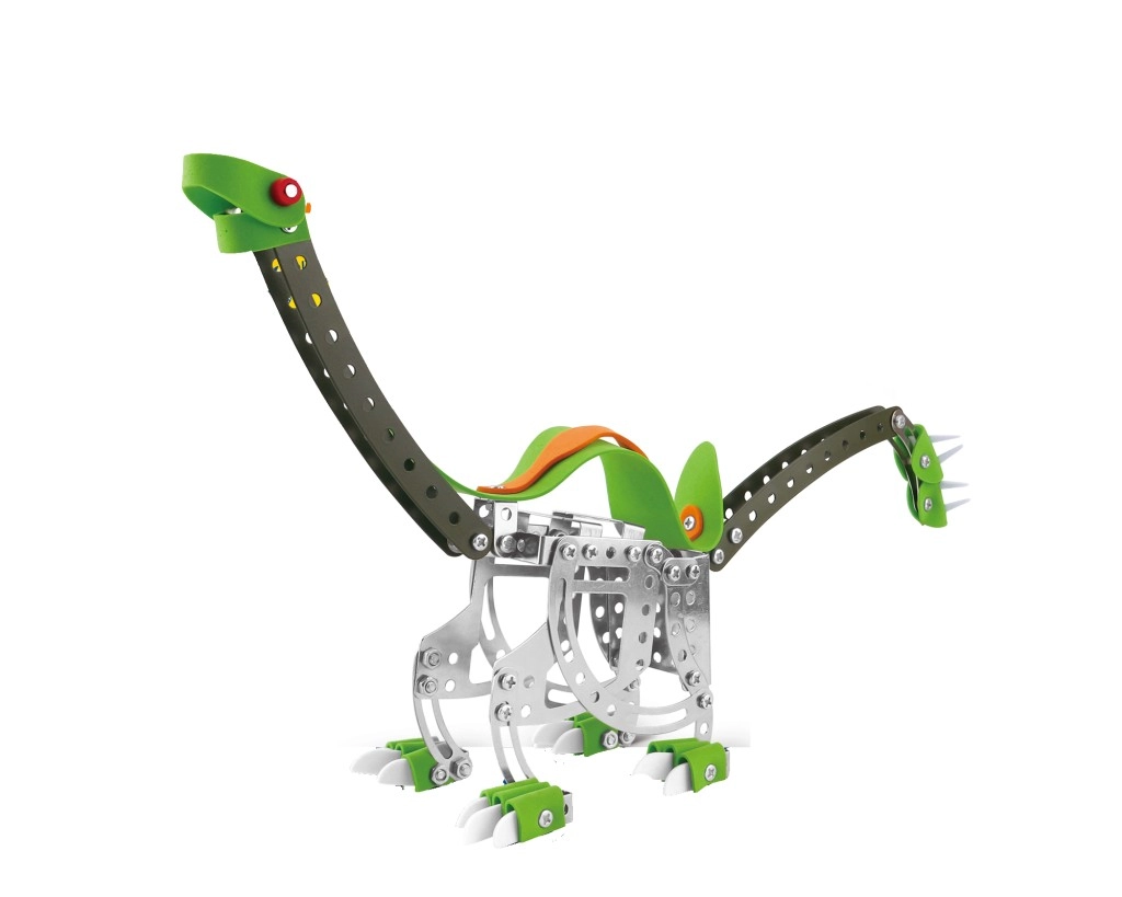 Építsd meg a saját őskori óriásodat! Ez a fém építőkészlet 141 darabból áll, és fém elemeket és műanyag kiegészítőket kombinál, amelyeket csavarokkal és anyákkal lehet összekapcsolni. Ideális mindenkinek, aki kreatív kihívást és egyben szórakoztató, értelmes alkotást keres.