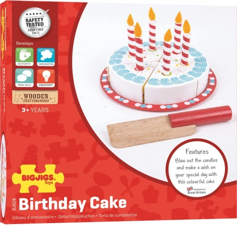 Fedezze fel az ünneplés varázsát a mi fa születésnapi tortánkkal a Bigjigs Toys-tól. Ez a játék ideális a kicsiknek, akik szórakoztató és interaktív játékok segítségével fedezik fel a körülöttük lévő világot. A torta elegendően nagy egy hatfős játéktársaságnak, és tartalmaz egy fa kést is az egyszerű vágáshoz.
