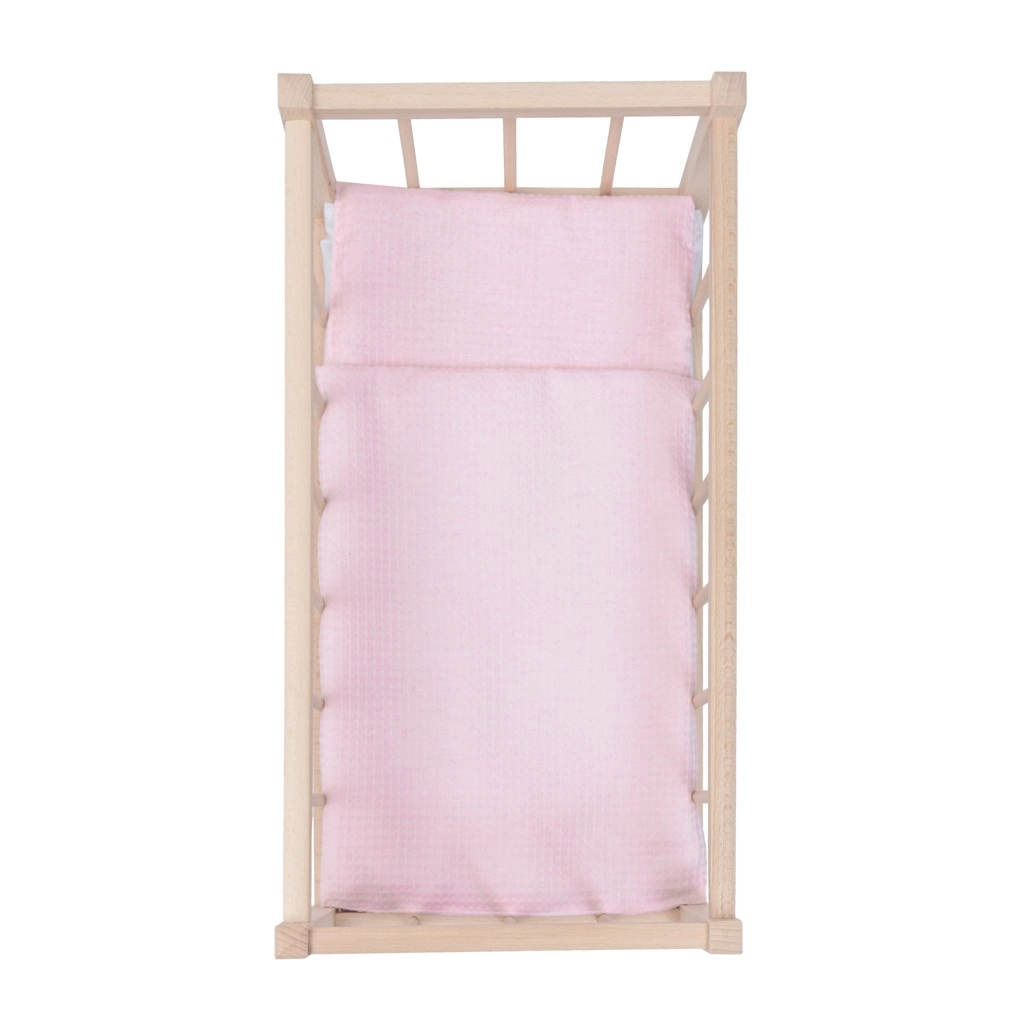 Ez a fa babakolcsó a természetes megjelenést, a biztonságot és a játék örömét ötvözi. A simára csiszolt, éles szélektől mentes fa kíméletes a gyerekkezekhez, a masszív felépítés pedig hosszú élettartamot biztosít a mindennapos játék során. A csomag része a pihe-puha matrac és a kétoldalas ágyneműszett finom rózsaszín árnyalatokban, amely bármely gyerekszobához illik.