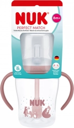 A NUK Perfect Match tanulópalack szívószállal kb. 8 hónapos kortól ajánlott, és támogatja az önálló ivást. A puha és rugalmas szilikon szívószál kíméletes a gyermek ajkaihoz és ínyéhez, míg a széles ajaktámasz a természetes ivási módot utánozza, megkönnyítve az átmenetet a cumiról a pohárra.