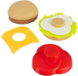 A burger és a hot dog elemei rétegezhetők és tetszés szerint variálhatók – a gyerekek építés közben fejleszthetik finommotorikájukat és kreativitásukat a „tökéletes” menü megalkotásához.