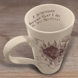 A belső peremen a „I solemnly swear that I am up to no good” felirat található, amely minden rajongónak kedves meglepetés.