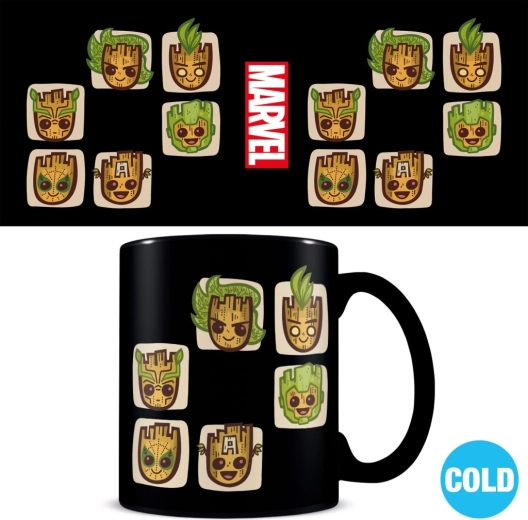 Élvezze kedvenc italát egyedi stílussal – ez a GROOT motívumú kerámia bögre forró ital hatására megváltoztatja a vizuális megjelenését. A hőreaktív nyomat szórakoztató effektust nyújt, amely minden használatkor örömet okoz.