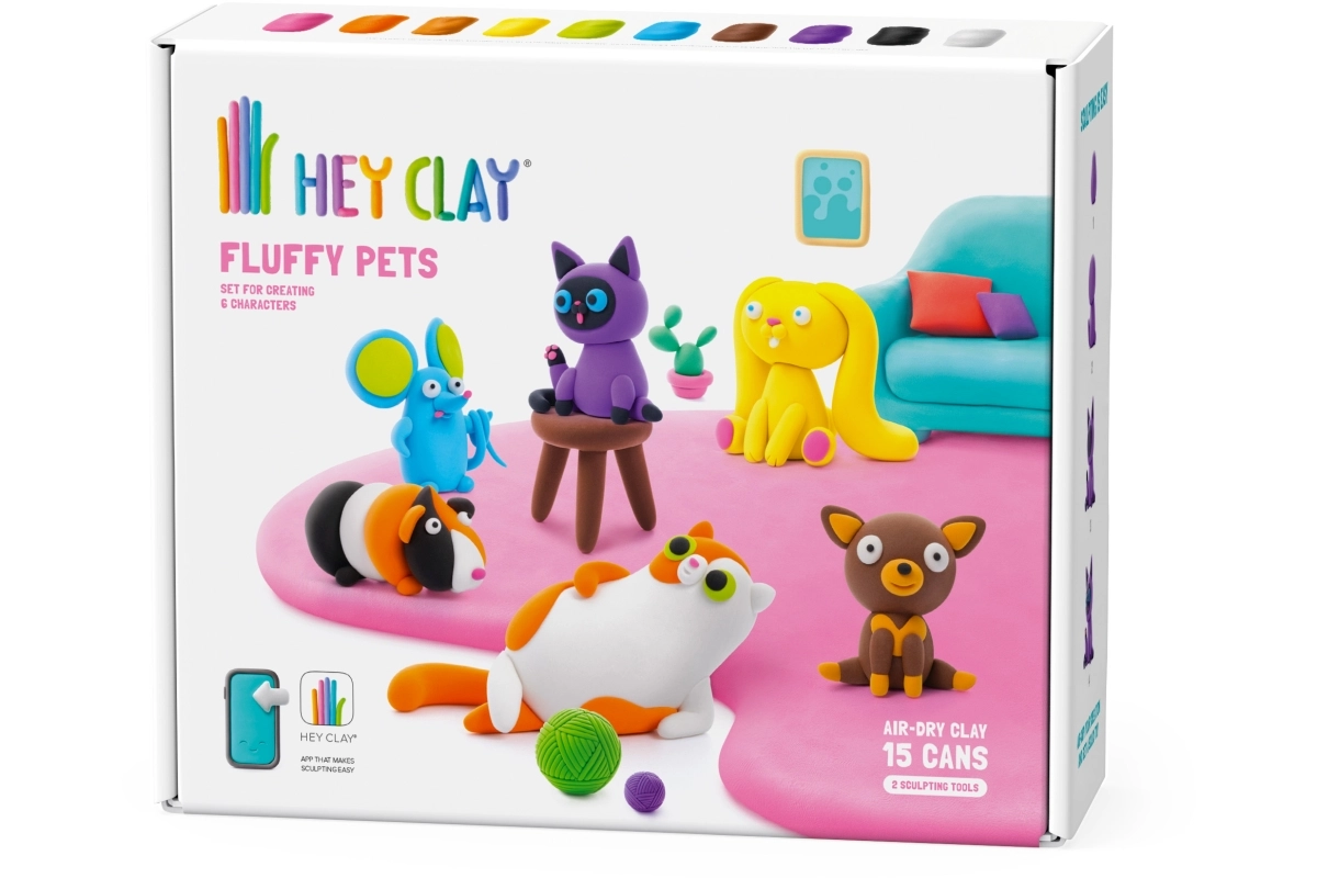 Fedezd fel a kreatív szórakozást a Hey Clay Fluffy Pets készlettel – csomag 15 tégely könnyű, illatos és levegőn száradó gyurmával, amellyel a gyerekek lépésről lépésre aranyos házi kedvenceket alkothatnak. A ingyenes Hey Clay alkalmazásnak (iOS/Android) és a mellékelt útmutatókat feloldó kódnak köszönhetően 6 figurát készíthetnek: 2 kutyát, 2 cicát, egy tengeri malacot és egy egeret. A kész modellek levegőn száradva megkeményednek, és a további játék részévé válnak. Korosztály: 3+.