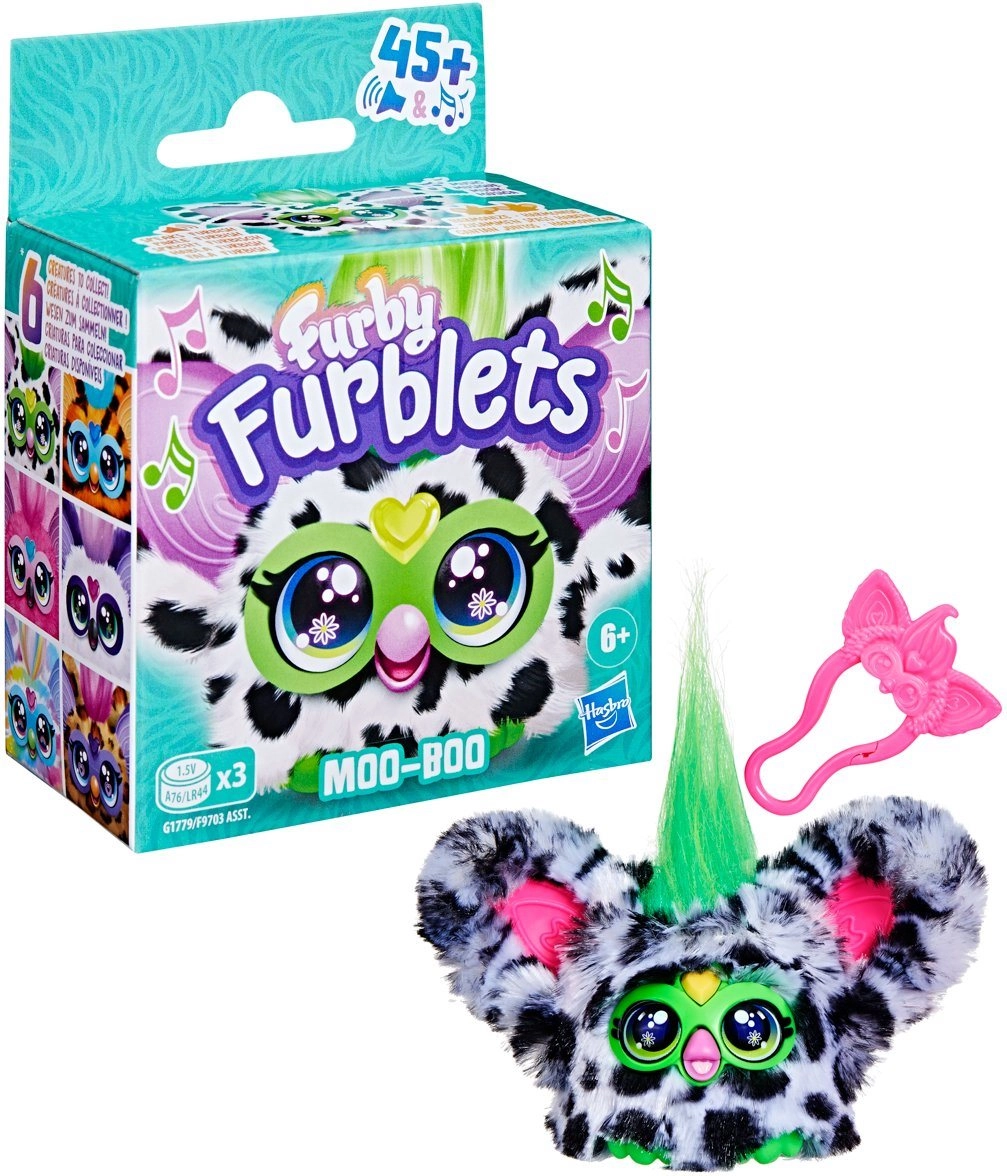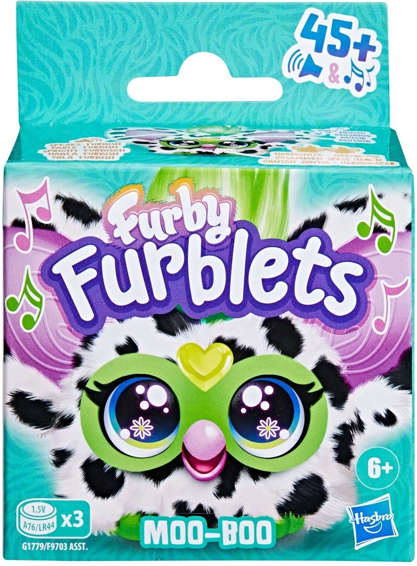 A Furblet Moo-Boo remekül kijön más Furbletekkel és a nagy FURBY játékkal – együtt énekelnek és harmonizálnak, így a szórakozás sosem ér véget. A praktikus klipnek köszönhetően könnyen a hátizsákra vagy táskára csíptethető, így kirándulásokon, az iskolában és otthon is mindig kéznél van.