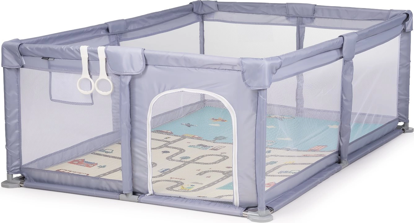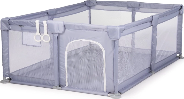 A stabil, megerősített váz lekerekített sarkokkal és puha párnázással növeli a biztonságot és a kényelmet. A karám könnyű, egyszerűen összeszerelhető és könnyen karbantartható – ideális a nappaliba és utazáshoz egyaránt. A csomag része továbbá 2 kapaszkodó gyűrű, amelyek segítik a gyermeket a felhúzódásban és az állás gyakorlásában.