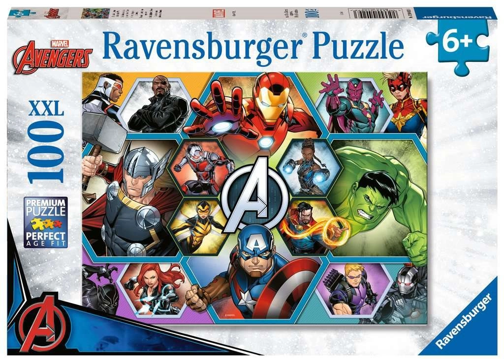 Fedezd fel a szórakozást gyerekeknek és a MARVEL Avengers rajongóinak a minőségi RAVENSBURGER XXL 100 darabos kirakóval. A nagy méretű darabok ideálisak a könnyű kirakáshoz, és fejlesztik a türelmet, a koncentrációt és a finommotorikát. Kirakva kb. 49 × 36 cm méretű képet kapsz.