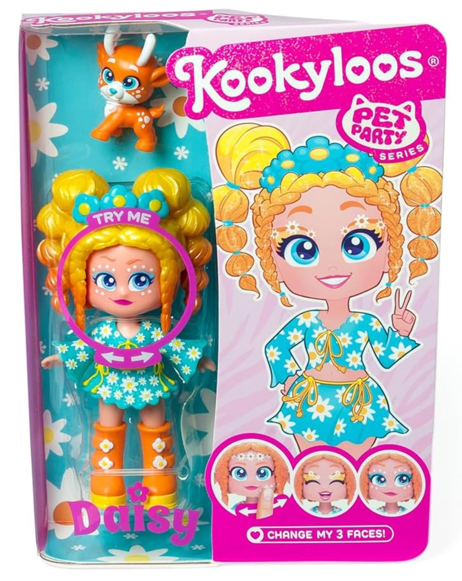 Fedezd fel a KookyLoos világát, ahol a szórakozás, a divat és a kifejező mimika egyedülálló játékélménnyé áll össze. A Daisy figura a Pet Party sorozatból jellegzetes frizurával, kidolgozott öltözékkel és egy cuki kisállattal – őzikével érkezik, ami új dimenziót ad a gondoskodásnak és a fantáziának.