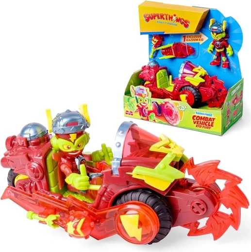 A népszerű SUPERTHINGS világ életre kel a „Kazoom Power” sorozat által inspirált, dinamikus készletben. A hős strapabíró járművével indul akcióba, készen a különleges támadás bevetésére és Kaboom City megvédésére. A nyitható járműbejárat és a forgó harci fúró igazán intenzív játékélményt nyújt.