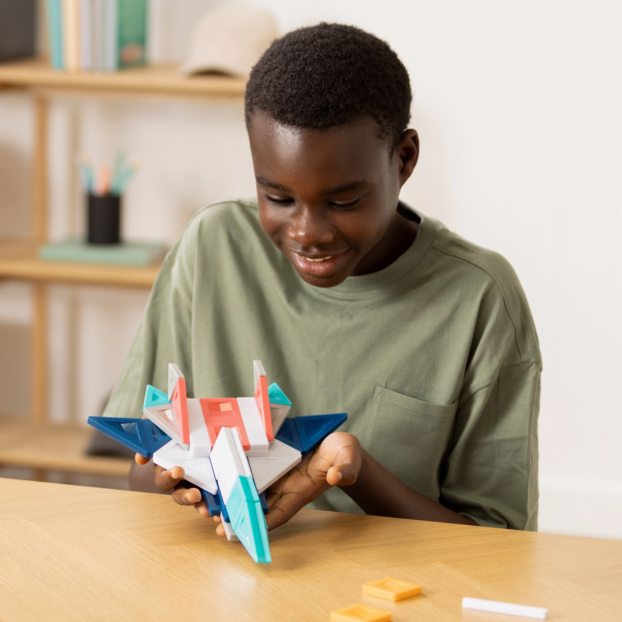 Beépített neodímium mágnesek 360°-os vonzóerővel biztosítják az elemek szilárd kapcsolódását és a könnyű építést az egyszerű modellektől egészen az összetett űrhajókig.