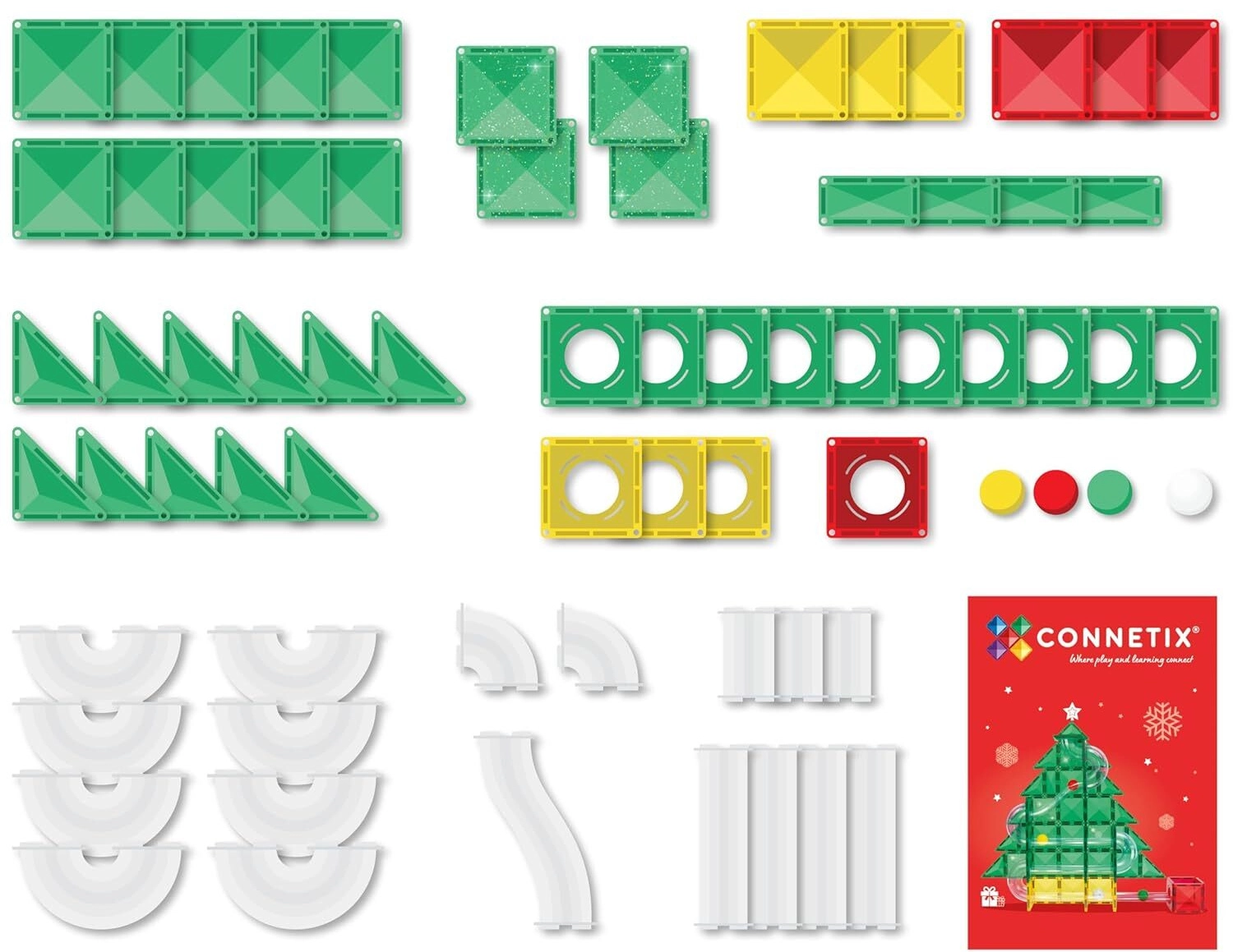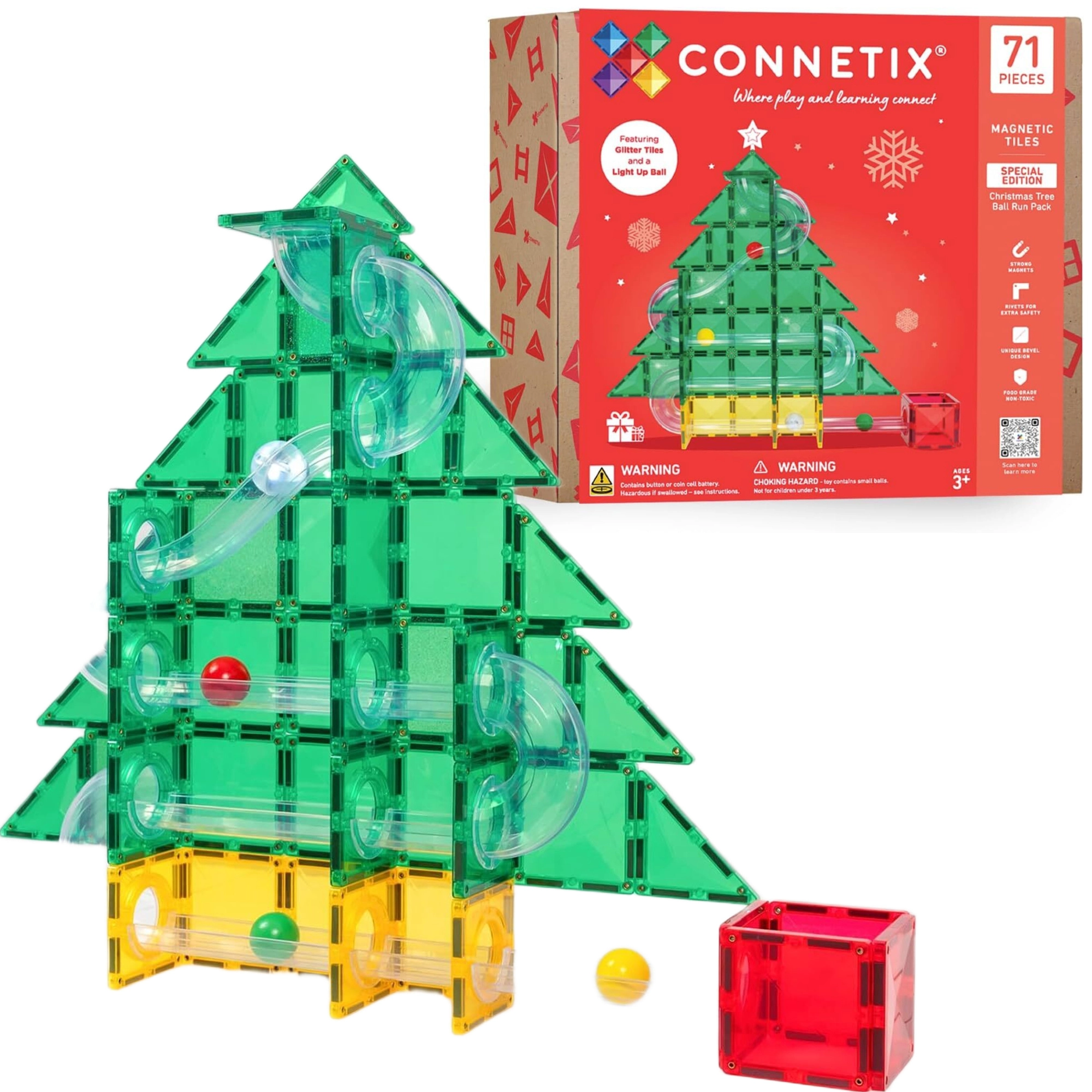 A limitált, karácsonyi CONNETIX Christmas Tree Special Edition Ball Run Pack ragyogó, csillogó színekben ideális kreatív 2D és 3D modellekhez, valamint gyors golyópályákhoz. A erős neodímium mágneseknek köszönhetően az elemek minden irányból megbízhatóan kapcsolódnak, a szerkezet tartja a formáját. Az összepattintás jellegzetes „kattanása” azonnali elégedettséget ad, és további kísérletezésre ösztönöz.