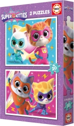 Szórakoztató gyerek puzzle SUPER KITTIES motívummal, két különálló kirakóval, mindegyikben 20 darab elemmel – ideális első kirakóknak. Az egyes puzzlek kész mérete kb. 28 × 20 cm, és fejleszti a finommotorikát, a türelmet és a logikus gondolkodást.