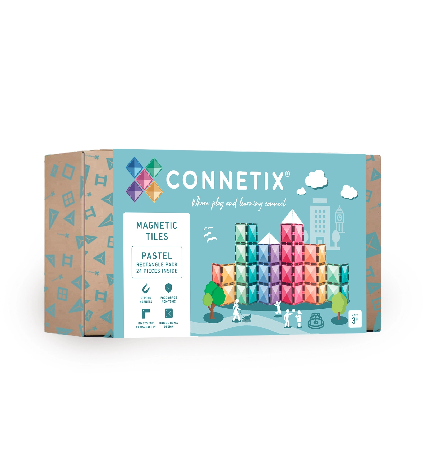 A CONNETIX pasztell készlet áttetsző, tartós téglalap elemeket kínál lágy színekben, amelyek biztos „kattanással” kapcsolódnak egymáshoz. A gyerekek játékos formában gyakorolják a geometriát, fizikát és a térbeli képzelőerőt, miközben hidakat, tornyokat, pályákat vagy mozaikokat építenek. A BPA- és ftalátmentes, biztonságos kivitel és a lekerekített élek 3 éves kortól kényelmes, biztonságos használatot garantálnak.