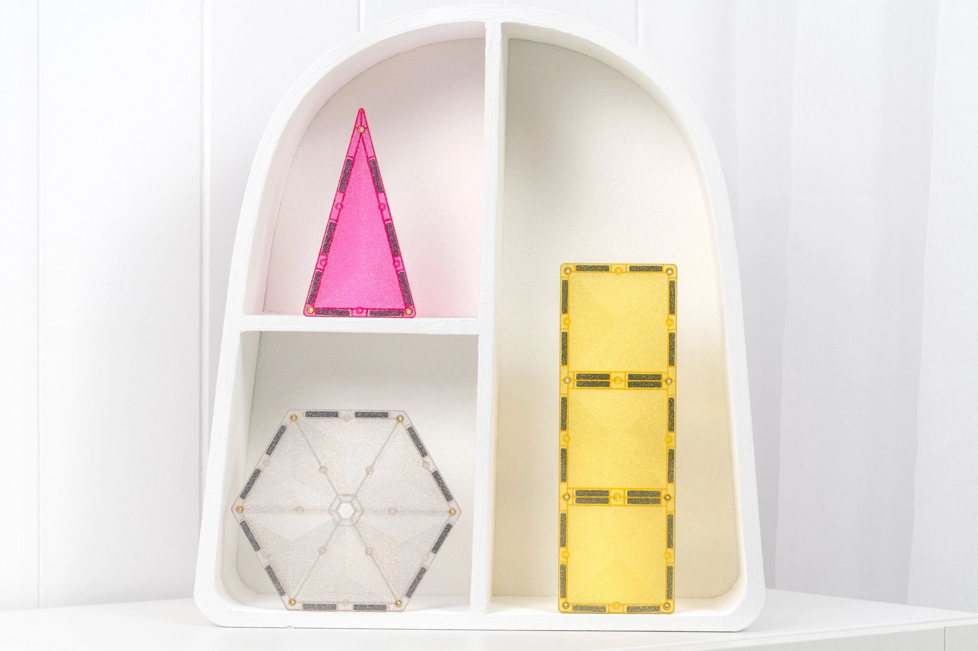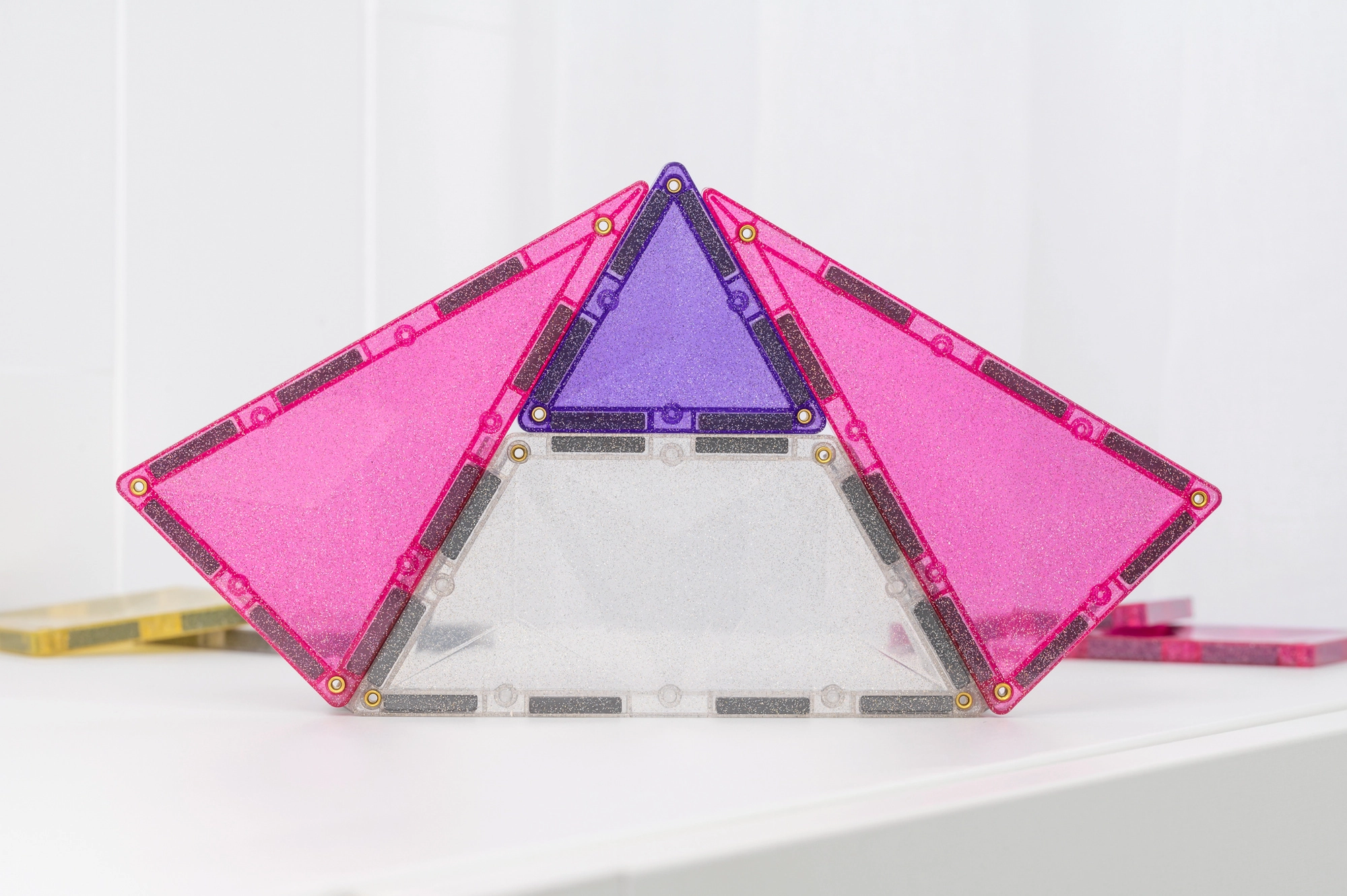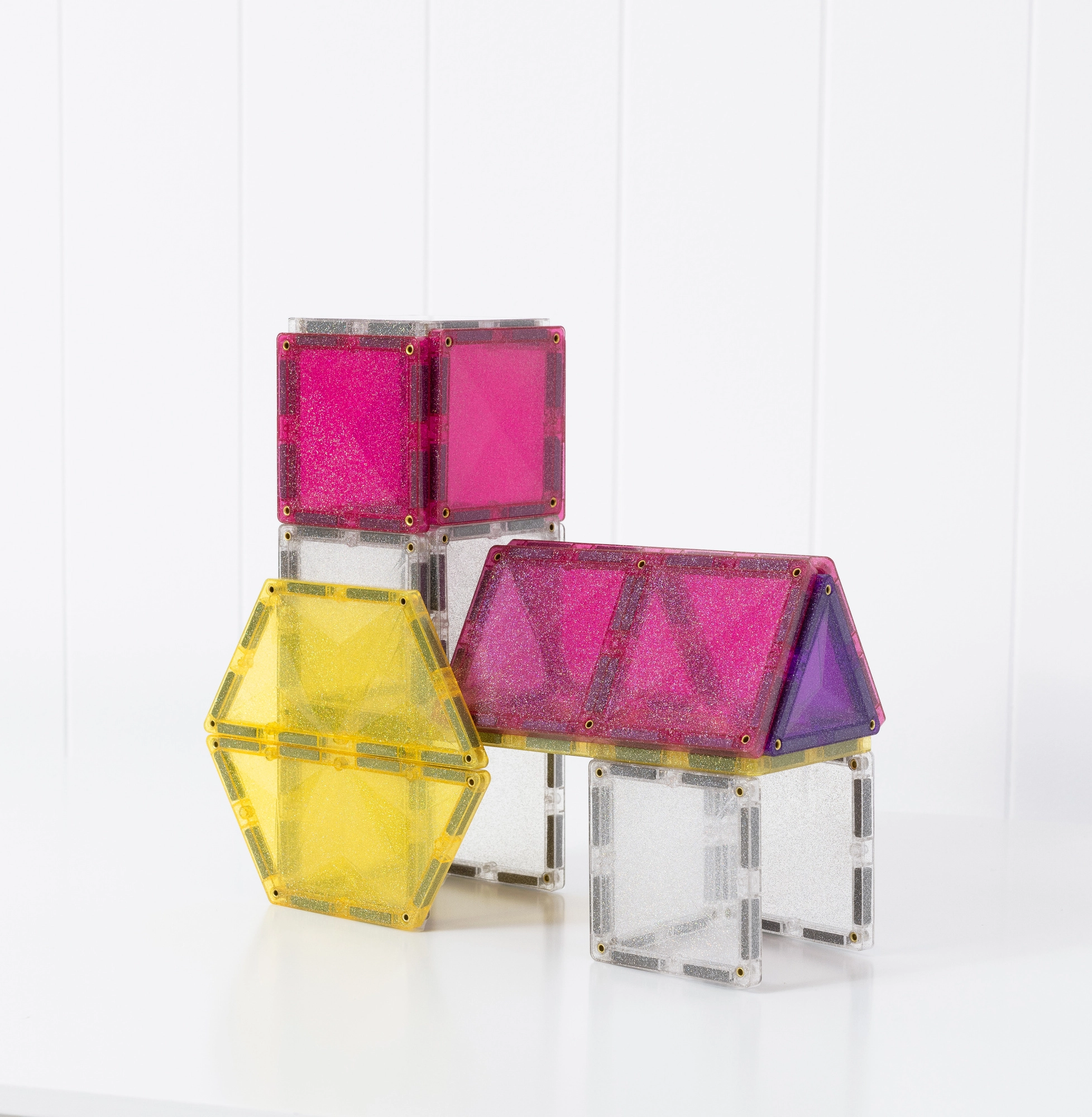 A glitter kivitel minden építményt felragyogtat. A fény szépen törik az áttetsző paneleken, és motiválja a gyerekeket egyedi unikornisos motívumok és kifinomult 3D építmények alkotására.