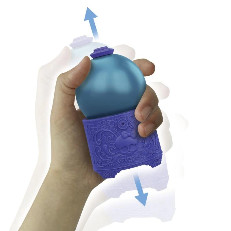 Ez a játékos szett egyedülálló kicsomagolási élményt nyújt: készítsd el a főzetet három lépésben – tölts vizet a gömbbe, rázd össze, és figyeld, ahogy varázsital képződik. Ezután fordítsd meg a gömböt, és megjelenik a mini baba a kedvenc MONSTER HIGH világodból. Kompakt méretének köszönhetően ideális otthoni játékhoz és utazáshoz is.