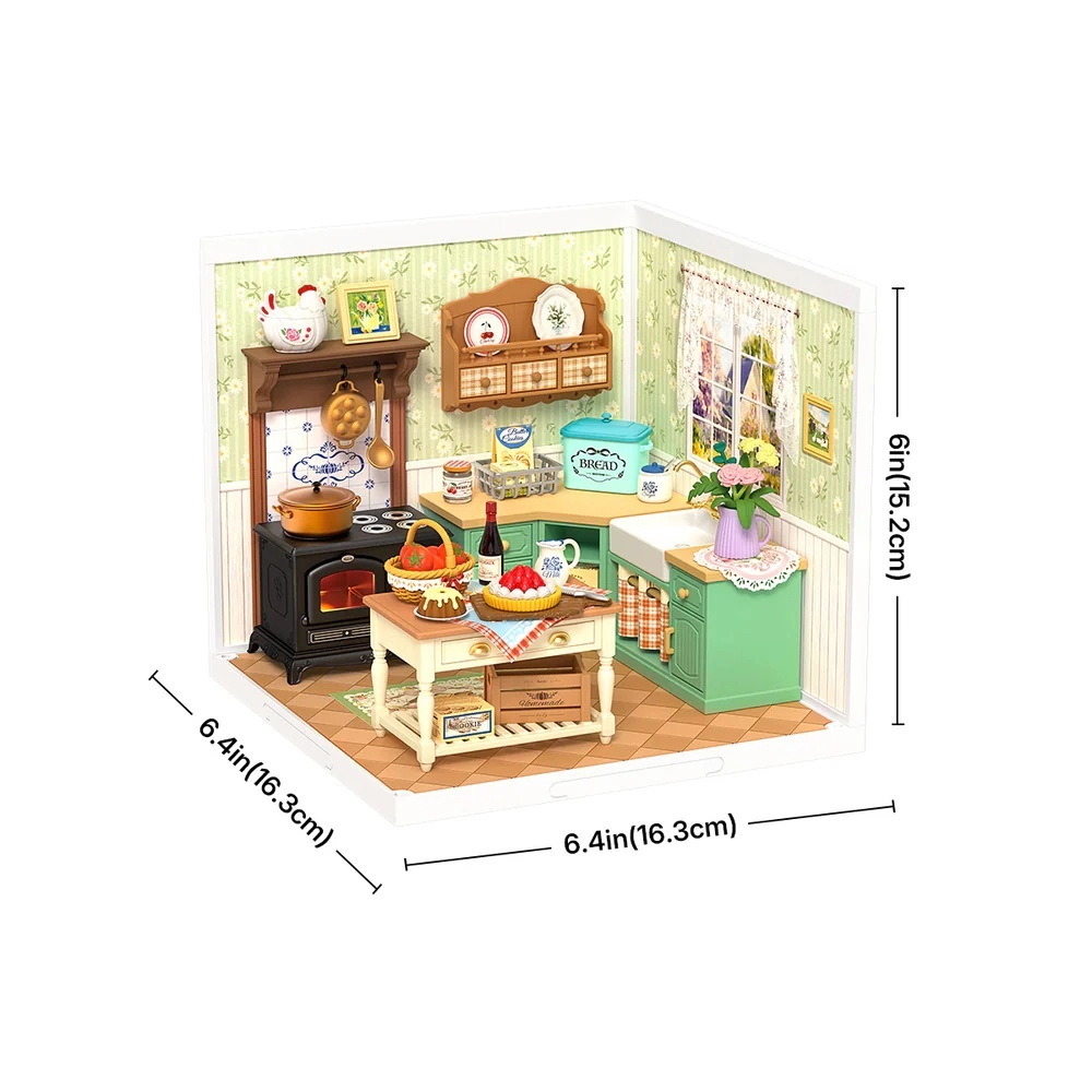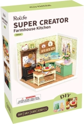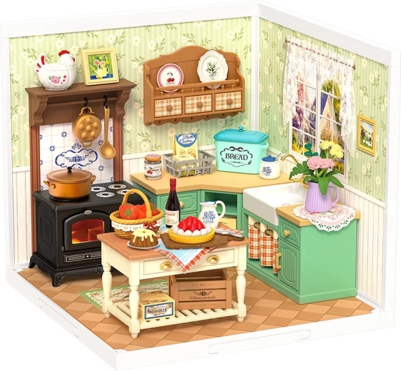 Fedezd fel a részletek és a nyugalom miniatűr világát. Ez a precíz DIY készlet végigvezet a parasztházi konyha megépítésén tűzhellyel, mosogatóval, szigettel és sok valósághű kiegészítővel. A LED világításnak köszönhetően minden bútordarab és dekoráció ragyog, a kész modell pedig a polc vagy a munkasarok figyelemfelkeltő dísze lesz.
