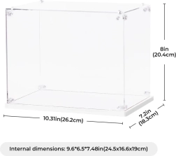 Ez az átlátszó akril doboz a 3D modellek és gyűjthető készletek biztonságos bemutatására készült. A teljesen átlátszó falak zavartalan rálátást biztosítanak minden irányból, miközben a masszív szerkezet véd a portól és a kisebb ütődésektől. Az egyszerű, ragasztó nélküli bepattintható összeállításnak köszönhetően néhány perc alatt készen van.