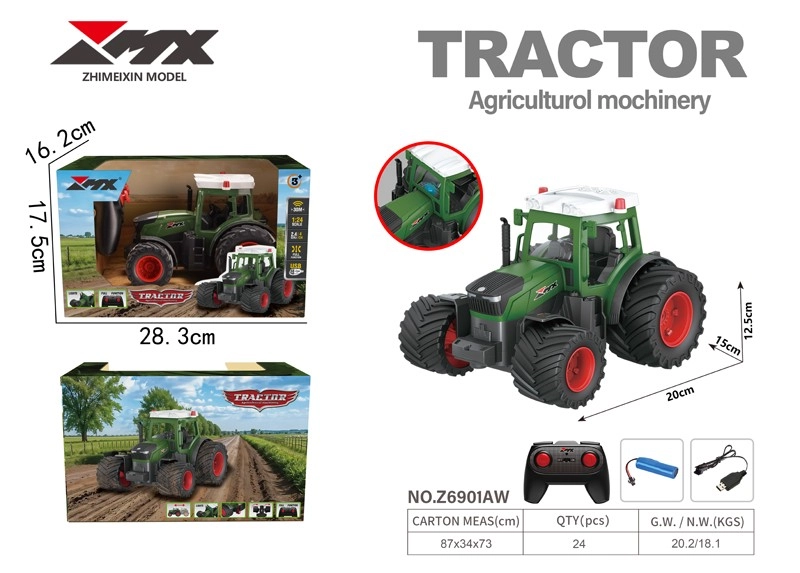 Ez az RC mezőgazdasági traktor robusztus felépítésével és autentikus megjelenésével egyaránt örömet okoz a gyerekeknek és a modellek rajongóinak. A zöld és piros színkombináció, a stabilitást adó széles gumik, valamint az ezüst tető piros villogókkal és lámpákkal hű képet ad egy valódi gépről. A nyitható fülkeajtók és olyan részletek, mint a kipufogócső, tovább erősítik a realisztikus hatást.
