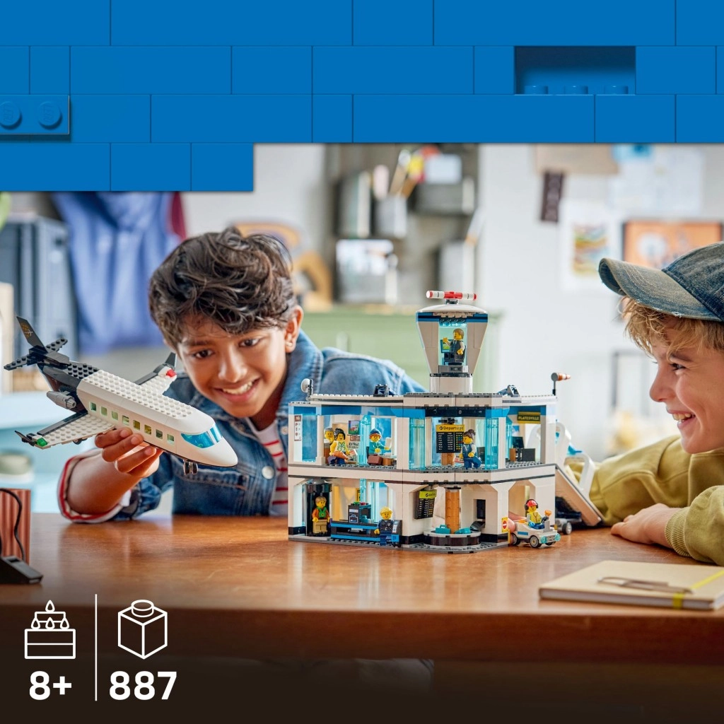 A készlethez 9 minifigura tartozik – pilóta, légiforgalmi irányító, reptéri személyzet és utasok kiegészítőkkel (bőröndök, újság, kávé). A készlet támogatja a kreatív játékot, fejleszti a képzeletet és a finommotorikát, és összekapcsolható más LEGO City szettekkel a még nagyobb játékvilágért.