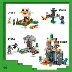 A csomag része a Menő hős, az Enderman és a kis hoglin minifigura, amelyek életre keltik a fantáziát és akciódús történetekre inspirálnak. A játékélményt hiteles kiegészítők fokozzák – varázsos íj és gyógyító bájital. Az építést a LEGO Builder alkalmazás könnyíti meg intuitív 3D nézettel, a modell forgatásával és világos lépésekkel a gördülékeny haladásért.