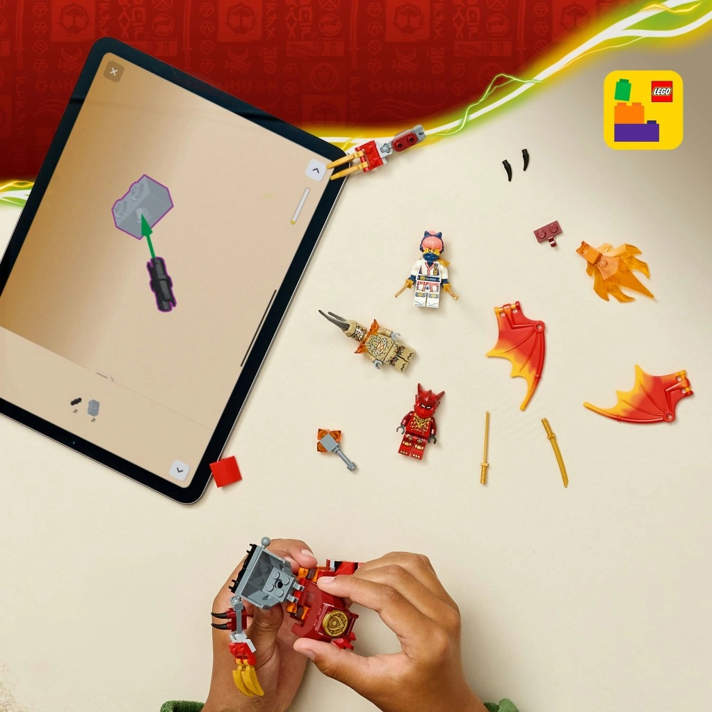 A dobozban 3 minifigura található: Kai két arany karddal, Sora a saját katanáival és a földszörny kristályos részletekkel – ideális összeállítás a NINJAGO világának történetmeséléséhez. A LEGO Builder alkalmazásnak köszönhetően a gyerekek könnyedén követhetik a digitális útmutatót nagyítással és 3D forgatással.