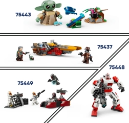 Az első évadból ismert STAR WARS: THE MANDALORIAN sorozat által inspirált szett hűen adja vissza a tatooine-i ikonikus speeder motort. Nem hiányzik a Mandalóri minifigura ezüst sisakkal, köpennyel és blaster puskával, valamint a bájos Grogu a motoron lévő táskában az autentikus jelenetekhez és saját kalandokhoz.
