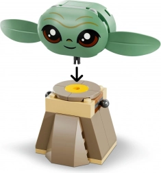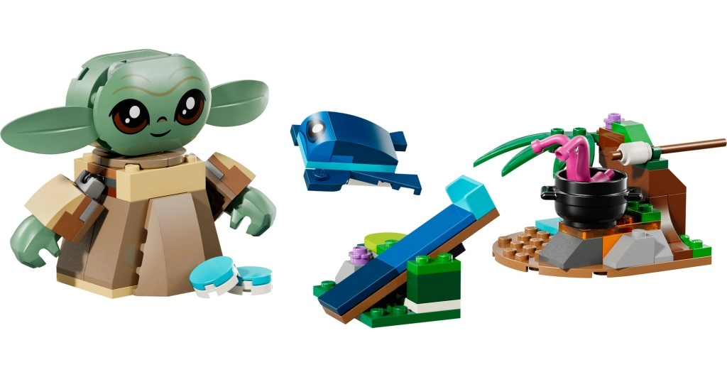 A készlethez egy kis játékkörnyezet tartozik tűzrakóhellyel és fekete fazékkal, pillecukorral nyárson sütéshez, két kék makarónnal (az egyik Grogu pocakjába illeszthető), sorgani békával katapulttal és apró kiegészítő modellekkel. Az egyszerű képes útmutató és a LEGO Builder alkalmazás nagyítást és modellforgatást kínáló eszközei segítenek fejleszteni a finommotorikát és az építés közbeni önbizalmat.