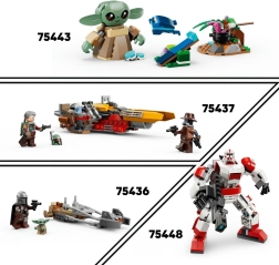 Építsd meg a Mandalore ostromának izgalmas jelenetét. A masszív, kompakt, piros–fekete pók járgány stud kilövővel és átlátszó pajzzsal egészül ki egy barikáddal és forgatható toronnyal a védelemhez. A négy, részletesen nyomtatott minifigura blasterekkel, hosszú puskákkal és jetpackokkal végtelen játékra és látványos kiállításra csábít.
