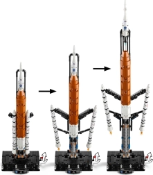 A készlet lenyűgözően ötvözi a műszaki pontosságot és a szórakozást. A modell hűen ábrázolja az SLS rakéta fokozatos indítását, beleértve a szilárd hajtóanyagú gyorsítók, a középső fokozat és a felső fokozat szétválását a hajtóműmodullal és az ORION űrhajóval. Az egész mechanizmust a stabil talapzaton lévő forgó kar működteti, információs panellel és a NASA, ESA és ARTEMIS program logóival.