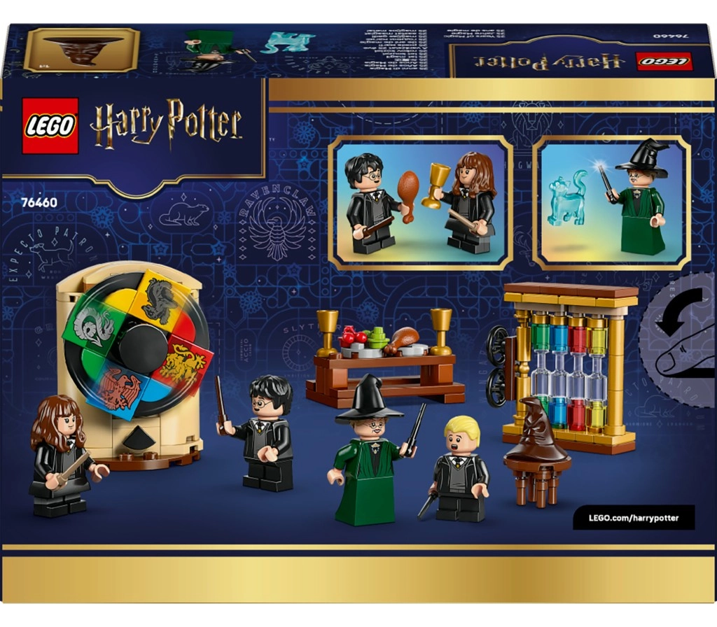 Lépj be Roxfort hangulatába, és élvezd a beosztási ceremóniát pont úgy, mint a filmben. Forgasd el a Teszlek Süveg mechanizmusát, tedd a minifigura fejére, és nézd meg, melyik házba kerül a diák. A Nagyterem autentikus részletei – többek között az étkezőasztal lakomával és a házpont-számláló – ösztönzik a kreatív játékot és a saját varázslatos történetek elmesélését.
