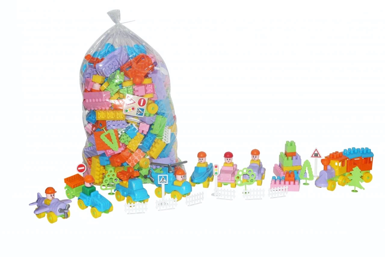 Univerzális építőkészlet 348 darabbal kicsi és nagy építészeknek, fejleszti a kreativitást, a finommotorikát és a türelmet. Tartalmaz műanyag építőelemeket, fákat, kerekeket és további kiegészítőket a végtelen építési lehetőségekhez.