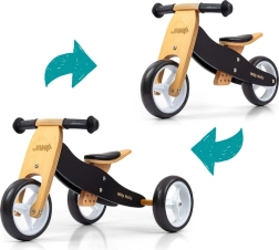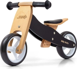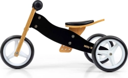 A 2 az 1-ben MILLY MALLY Jake Classic Black futóbicikli együtt nő a gyermekkel: kezdetben stabil tricikliként használható, majd pillanatok alatt pedál nélküli egyensúlyozó kerékpárrá alakítható két kerékkel. A könnyű és erős fa szerkezetnek, a kényelmes, 3 fokozatban állítható puha nyeregnek és a csúszásmentes markolatoknak köszönhetően biztonságos és szórakoztató gurulást kínál.