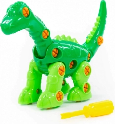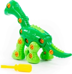 Szórakoztató építőkészlet kis felfedezőknek: zöld színű, szétszerelhető Diplodocus dinoszaurusz csavarokkal és keresztfejű csavarhúzóval, amely fejleszti a finommotorikát, a logikus gondolkodást és a kreativitást. Biztonságos, lekerekített formák és minőségi műanyag gondoskodnak a kényelmes, hosszan tartó játékról.